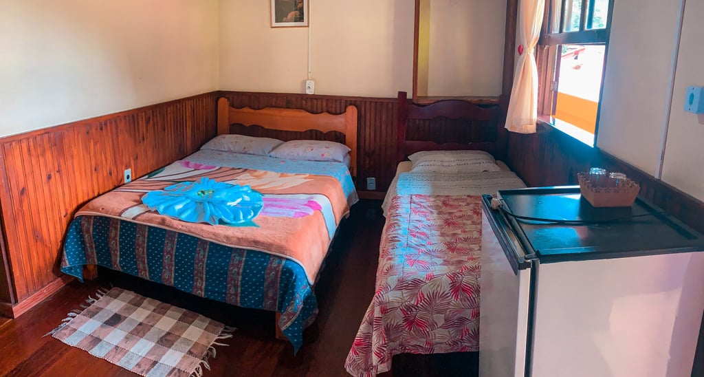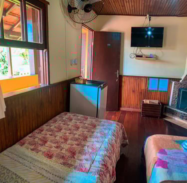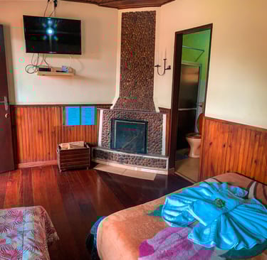 Ideal para pequenos grupos ou famílias, com uma cama de casal e uma cama de solteiro. A lareira deixa o ambiente ainda mais acolhedor. A hospedagem perfeita para curtir Visconde de Mauá com quem você ama, em meio à natureza.
