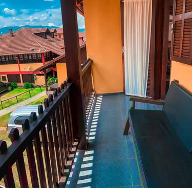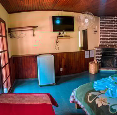 Mais espaço, aconchegante e com uma bela varanda. A combinação perfeita entre conforto e natureza, com lareira, cama de casal e cama de solteiro. A opção ideal para relaxar em família ou com amigos.